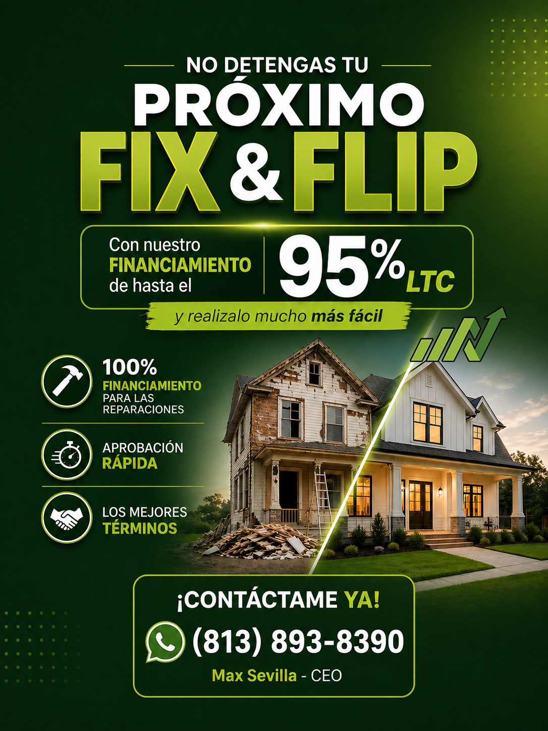 We offer Hard Money Loans for Real Estate Investors, including fix and flip, at the best terms. We also offer 100% Rehab Funding, EXPERIENCE MAKES THE DIFFERENCE.